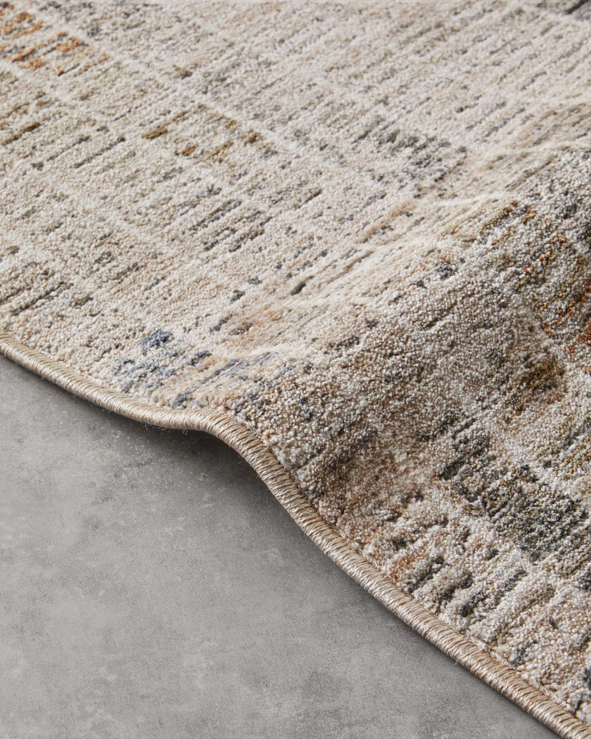 Esther Halı 80x150 cm Bej, 80x150 cm ölçüsüyle yaşam alanlarına zarif ve modern bir görünüm kazandırır. Toz vermez antialerjik özelliğine sahiptir. Vintage görünümlü grafik desenli dikdörtgen halı.