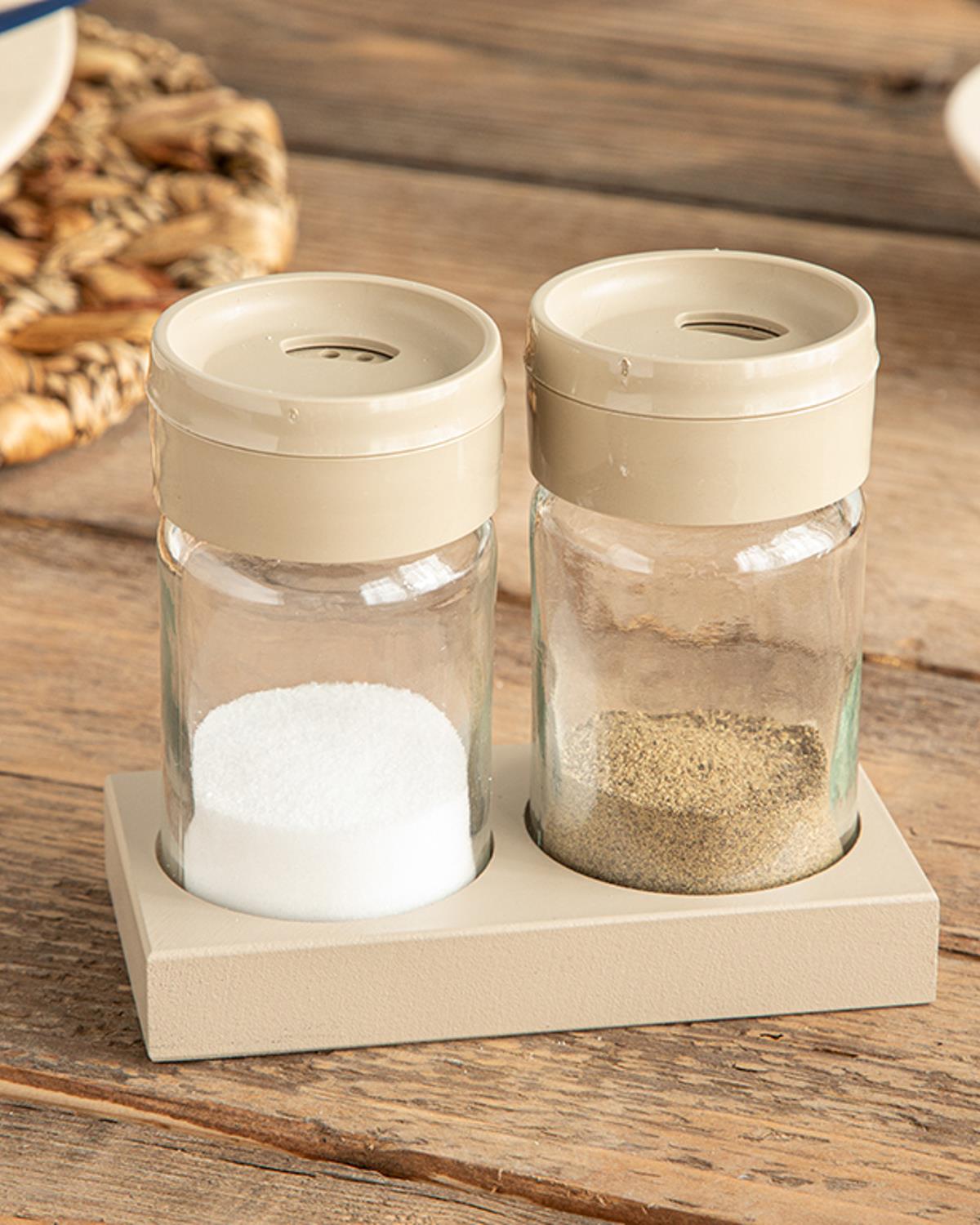 1 Ahşap Stand + 2 Adet Tuzluk-Biberlik