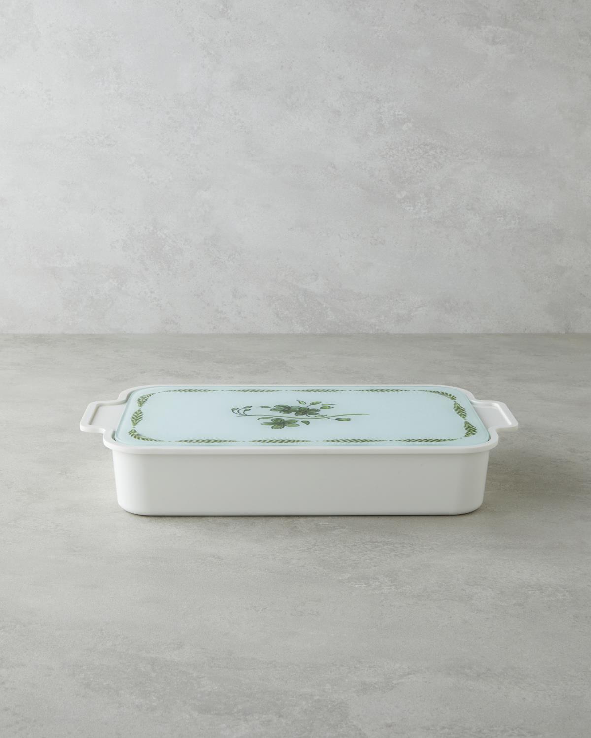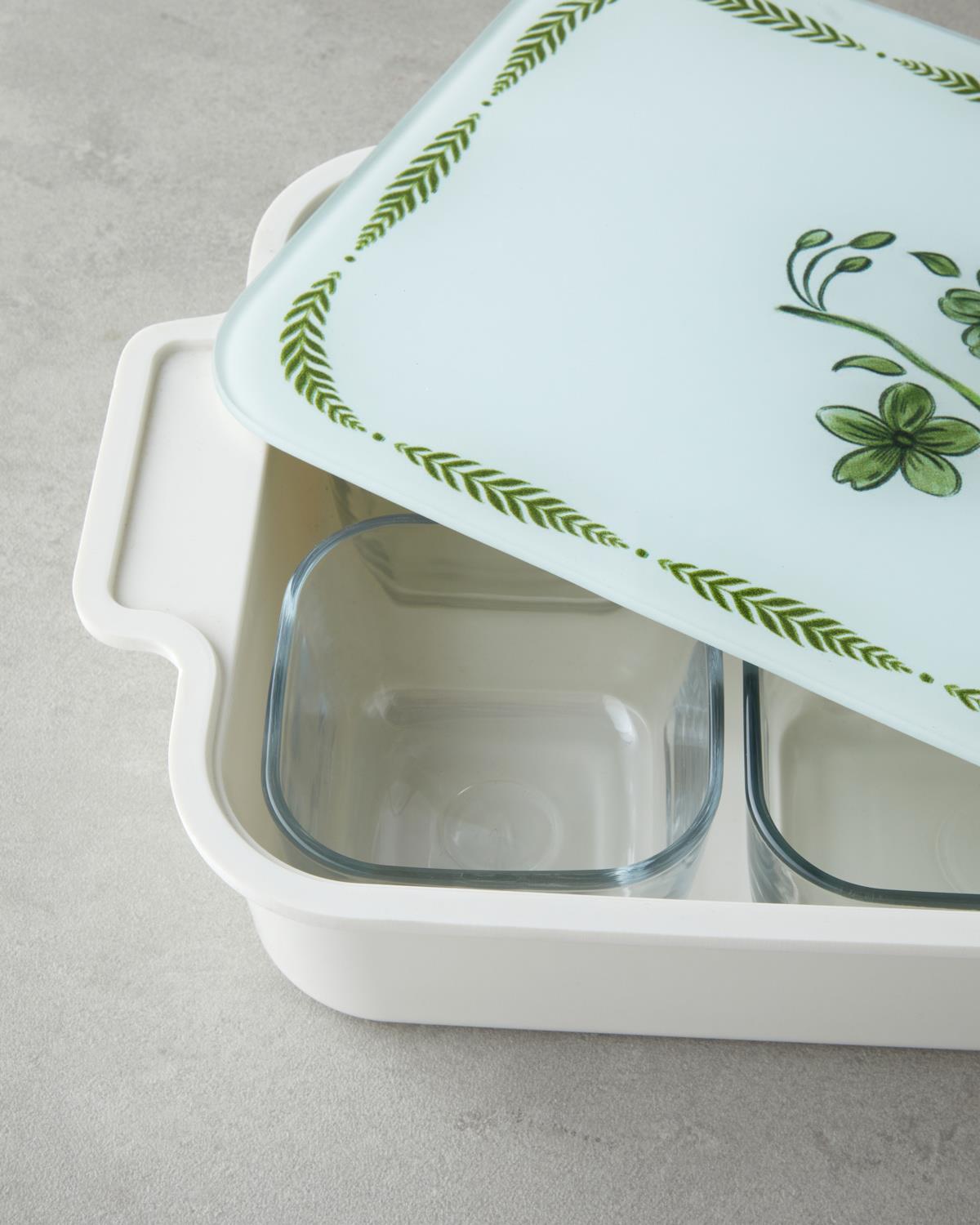 Plantopia Melamin 6'lı Cam Kapaklı Kahvaltılık 39x21 cm Beyaz - Yeşil (000000010050162001)